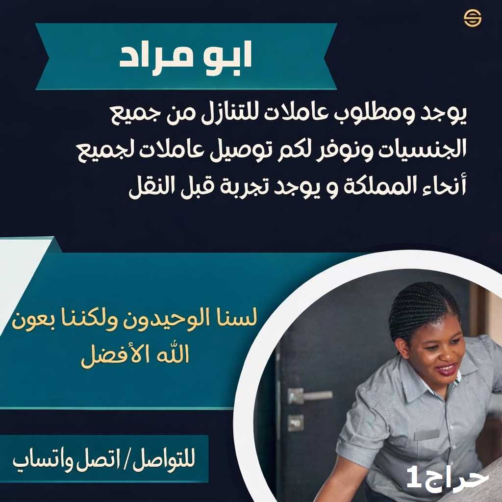 نعلن عن وجود عاملات وطباخات ومربيات اطفال للتنازل من جميع الجنسيات(اندونيسيا_فلبين_سيرلانكا_بنجلاديش_كينيا_ا وغندا) علي قدر كافي من المهاره والتدريب يجيدون كافة اعمال المنزل(طبخ_ترتيب_غسيل_تنظيف_كي ملابس)توجد فترة تجربه قبل نقل الكفاله نرسل عاملات لجميع انحاء المملكه كما يعلن المكتب عن وجود قسم خاص لاستقبال اي عماله منزليه غير موفقه لدي كفيلها واعادة تاهيلها للكفيل الجديد توجد عقود رسميه وموثقه لحفظ وضمان الحقوق